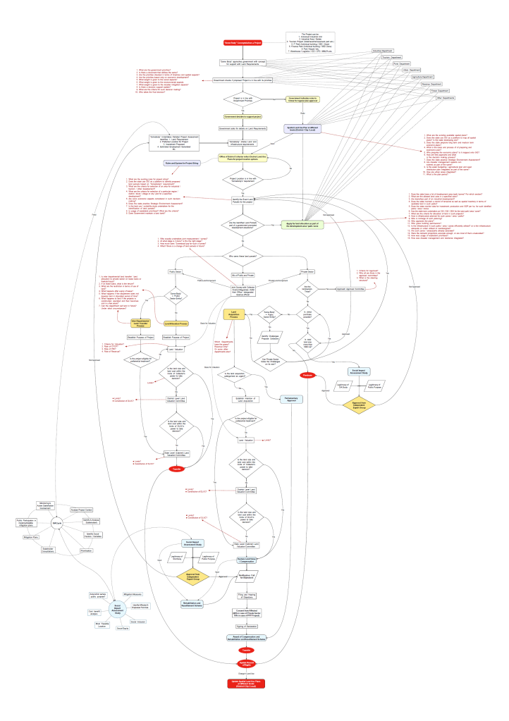 Check out the image below. The questions one should ask, while preparing a land use planning policy are highlighted in red. Click here to access the more readable portable document format (pdf) version of the mind map for acquisition process.