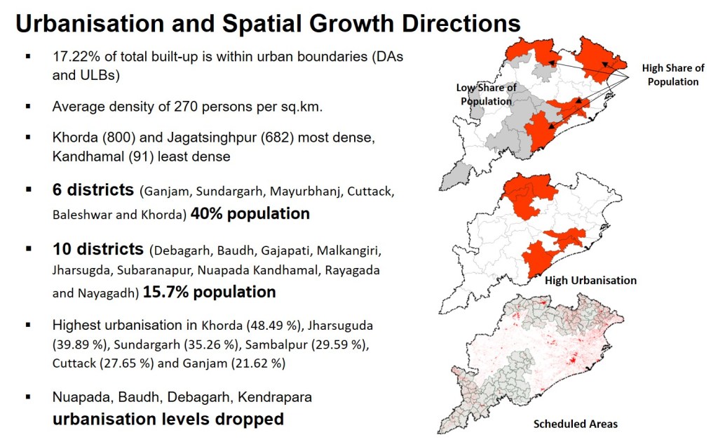 Other than Sundergarh and Sambalpur, all other districts which are declared as scheduled districts as per the constitutional provision have low levels of urbanization.