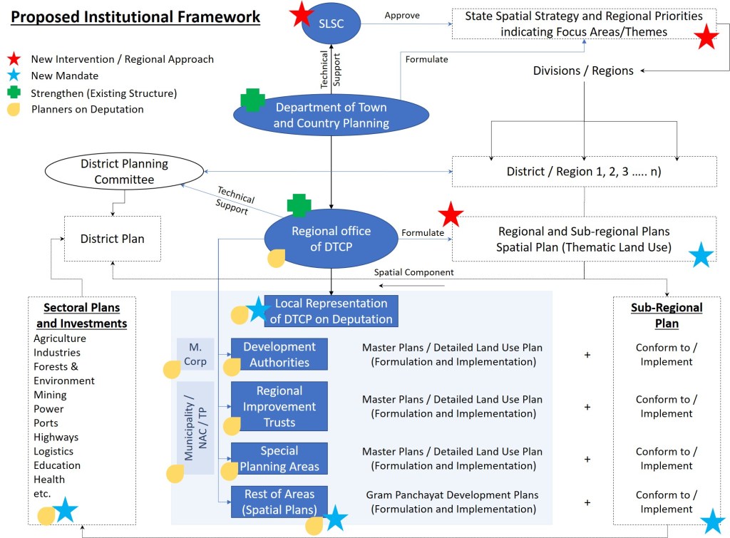 | Regional and Sub-Regional Plan | DTCP through regional offices | SLSC and/or DTCP | DTCP/ Sectoral Departments / District Administration | Planning, Development and Convergence |